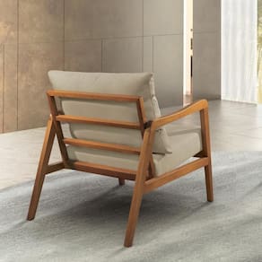 A poltrona Bia tem um design moderno e cheio de charme. Também proporciona muita estabilidade com seus detalhes em ripado nas costas. Contém almofadas em formato pastel para fugir um pouco do tradicional sem deixar de ser clássica.