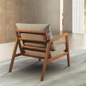 A poltrona Bia tem um design moderno e cheio de charme. Também proporciona muita estabilidade com seus detalhes em ripado nas costas. Contém almofadas em formato pastel para fugir um pouco do tradicional sem deixar de ser clássica.