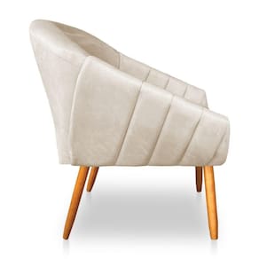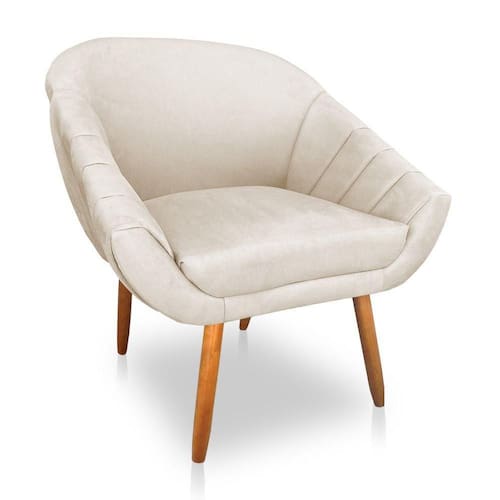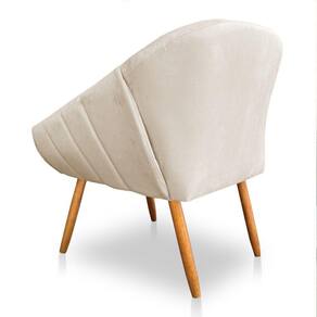 Poltrona Bianca Suede Bege Pés Palito Castanho - Pallazio
