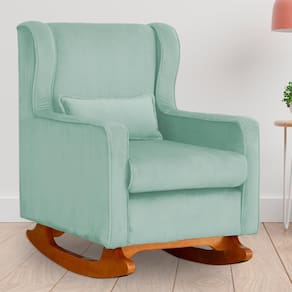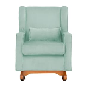 Poltrona C/ Puff Balanço Amamentação Aurora Veludo Acqua - LM DECOR - Verde Claro
