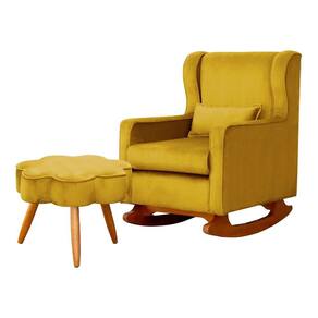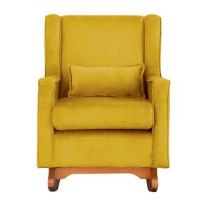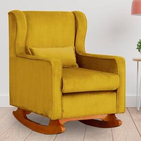 Poltrona C/ Puff Balanço Amamentação Aurora Veludo Mostarda - LM DECOR