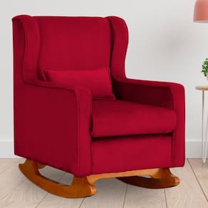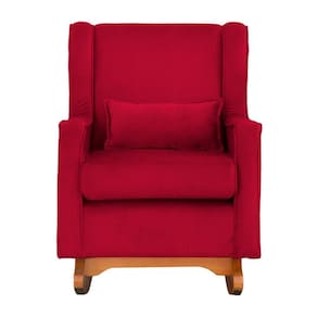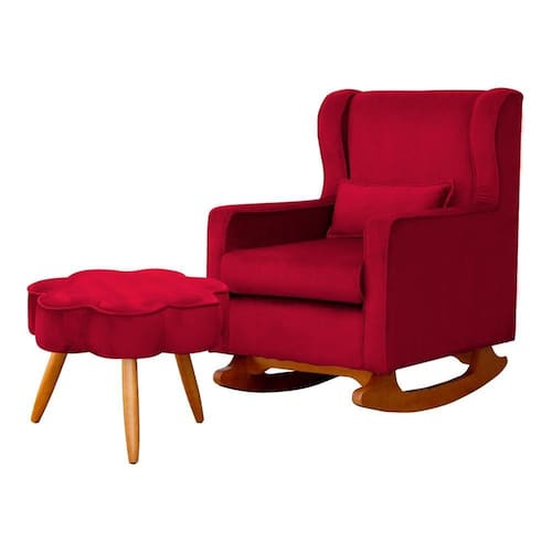 Poltrona C/ Puff Balanço Amamentação Aurora Veludo Vermelho - LM DECOR