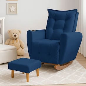 Poltrona Cadeira de Amamentação Balanço e Puff Ternura Marinho - Azul Marinho
