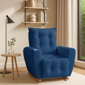 Poltrona Cadeira de Amamentação Balanço e Puff Ternura Marinho - Azul