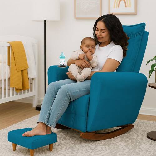 Poltrona Cadeira de Amamentação Balanço e Puff Ternura Turquesa - Azul Turquesa