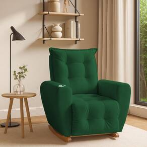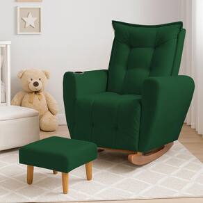 Poltrona Cadeira de Amamentação Balanço e Puff Ternura Verde