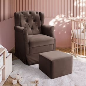 Poltrona Cadeira De Amamentação Balanço + Puff Corano Marrom - Marrom Chocolate