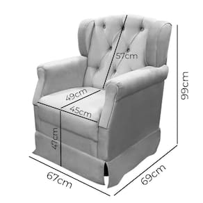 Dimensões da Poltrona: Altura: 99 cm; Largura: 67 cm; Profundidade: 69 cm; Peso: 23,200 Kg; Profundidade do Assento: 49 cm; Largura do Assento: 45 cm; Altura do Encosto: 57 cm; Altura do Assento: 47 cm.