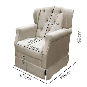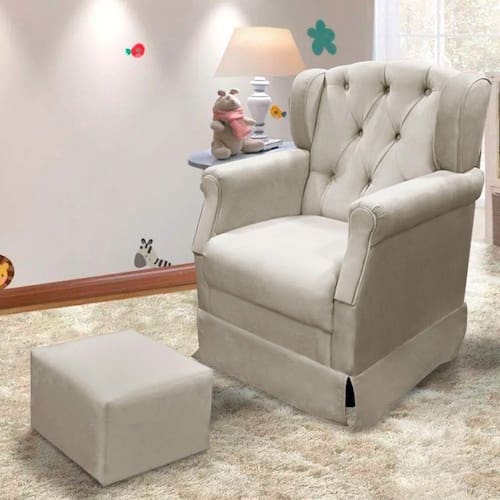Poltrona Cadeira De Amamentação Balanço + Puff Ternura Veludo Bege Marfim - Speciale Home Veludo Bege Marfim Poltrona Cadeira de Amamentação Balanço + Puff Ternura Veludo Bege Marfim - Speciale Home A poltrona amamentação proporciona todo o conforto e aconchego que a família precisa nesta fase tão especial, e encanta pelo seu estilo sofisticado. Feita com matéria-prima de alta qualidade a poltrona possui estofado revestido por tecido de toque suave que proporciona aconchego para os momentos de amamentação. O puff quadrado traz conforto e beleza para a rotina da mamãe, e ajuda no descanso para pernas e pés tornando o momento ainda mais confortável. A poltrona possui um balanço suave em sua base, e um encosto alto com espuma de excelente densidade e estrutura sólida de madeira.