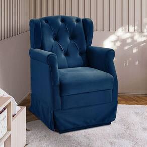 Poltrona Cadeira De Amamentação Balanço Ternura Veludo Star Confort Azul - Blush