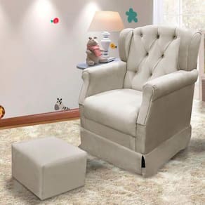 Conteúdo da Embalagem: 01 Poltrona Cadeira de Amamentação Ternura Balanço e Puff Suede Bege Star Confort