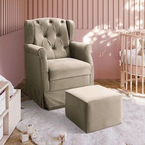 01 Poltrona Cadeira de Amamentacao Ternura Balanco e Puff Suede Bege