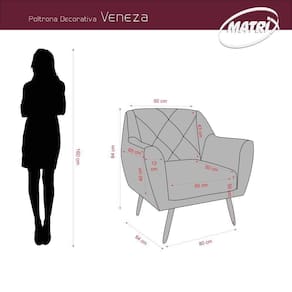 Poltrona Veneza é composto: espuma: D23 braças e assento, D20 encosto madeira: eucalipto de reflorestamento percinta: cinta elástica composição dos pés: madeira fixação: grampos e parafusos composição da embalagem: malha, plástico e papelão, garantia: 90 dias de fábrica.