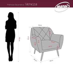 Poltrona Veneza é composto: espuma: D23 braças e assento, D20 encosto madeira: eucalipto de reflorestamento percinta: cinta elástica composição dos pés: madeira fixação: grampos e parafusos composição da embalagem: malha, plástico e papelão, garantia: 90 dias de fábrica.