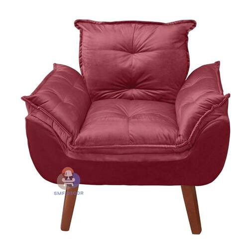 Poltrona/Cadeira Decorativa Glamour Com Pés Quadrado - Vinho