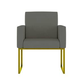 Poltrona cadeira decorativa recepção base de ferro dourado Cor: cinza A poltrona nina traz muita segurança e conforto para seu ambiente. Sua estrutura é 100% em madeira eucalipto e todo conforto se deve a espuma com densidade d-23. Com um design sofisticado, a poltrona nina conta com acabamento em suede.