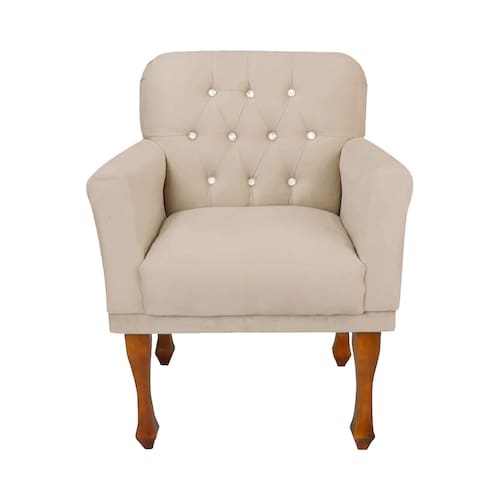 Poltrona Cadeira Estofada Botões de Strass Para Sala de Visitas Anitta Suede Bege LM DECOR