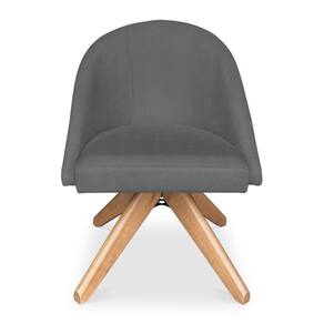 Poltrona Cadeira Giratória Bela Suede Grafite Base De Madeira - Pallazio - Cinza