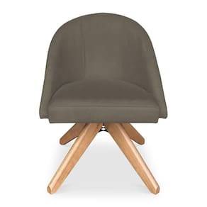 Poltrona Cadeira Giratória Bela Suede Marrom Rato Base De Madeira - Pallazio