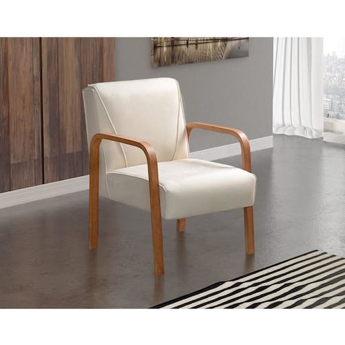 Poltrona Cadeira Moderna Braço Madeira Anita Bege Claro