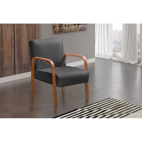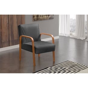 Poltrona Cadeira Moderna Braço Madeira Anita Cinza grafite