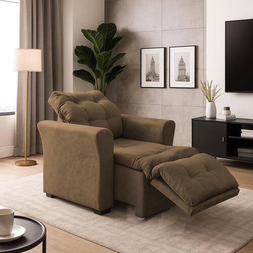 Procurando por uma poltrona que una conforto extremo e estilo incomparável? Esta Poltrona do Papai foi desenvolvida para pessoas exigentes e de bom gosto que buscam o máximo em bem-estar e sofisticação. Produzida com materiais de alta qualidade e por profissionais qualificados, ela garante não apenas durabilidade, mas também um conforto que transforma seu dia a dia. Ideal para Todos os Momentos e Necessidades Esta poltrona é perfeitamente indicada para seu momento de lazer e descanso, seja para a leitura de um bom livro, ou para maratonar sua série favorita, filmes e jogos. Além disso, ela é uma excelente aliada para quem necessita de um suporte extra: • Pessoas Idosas: Oferece um assento confortável e seguro. • Pessoas com Necessidades Especiais: Proporciona o apoio e o conforto essenciais para o dia a dia. • Clínicas e Consultórios: Perfeita para o uso de pacientes ou de seus acompanhantes, garantindo comodidade durante a espera ou recuperação. Funcionalidades e Mecanismo O design focado no seu bem-estar traz um mecanismo prático e fácil de usar: • Assento Retrátil: Maior profundidade para máximo relaxamento. • Encosto Reclinável: Possui quatro níveis de inclinação para você encontrar a posição perfeita. • Apoio Extra para os Pés: Acionado junto com o assento, proporciona um conforto ainda maior. • Extremamente Confortável: A prioridade em sua construção. OBSERVAÇÃO IMPORTANTE SOBRE O ACIONAMENTO: Por essa razão, pessoas com deficiência física ou idosos muito debilitados podem precisar da ajuda de um acompanhante para acioná-lo completamente. Dimensões e Cuidados Conheça as especificações para garantir que ela se encaixe perfeitamente no seu espaço: