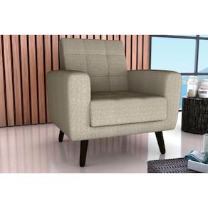 Poltrona Livia é composto: espuma: D23 assento D20 braça e encosto madeira: eucalipto de reflorestamento percinta: cinta elástica composição dos pés: madeira fixação: grampos e parafusos composição da embalagem: plástico, papelão e malha garantia: 90 dias abertura de fabrica.