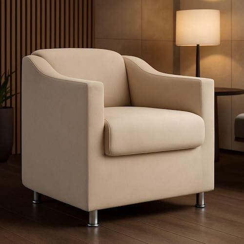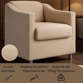 Seus pés cromados adicionam um toque moderno e refinado, elevando a estética do ambiente com leveza visual e um brilho sutil. O assento generoso e o encosto ergonômico acolhem com suavidade, tornando cada pausa um momento de puro relaxamento.