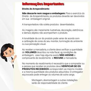 A tonalidade da cor do produto pode variar de acordo a calibração de cores do seu monitor, a iluminação do ambiente ou sua percepção visual.