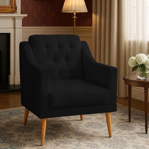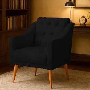A Poltrona Marisa chama a atenção pelo visual marcante em estilo retrô, agregando valor ao seu ambiente e levando muito mais elegância e sofisticação. Visando a total comodidade e qualidade do móvel, ela têm o acabamento em espuma D-26 com Pes de madeira e encosto em capitonê