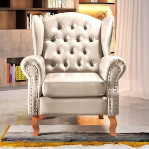 É necessário que haja uma ou mais pessoas no local para receber, desembalar, e conferir o produto. Acompanha Almofadas extras: Não Acompanha Puff: Não Almofada do assento: Não Possui Almofada do encosto: Não Possui Altura do assento até o chão: 48 cm Altura do Encosto: 120 cm Ambiente Principal: Sala de Estar Complexidade da Montagem: Baixa: pode ser montado por uma pessoa sozinha Cor: Bege Cor do Produto: Bege Design Assinado: Não Enchimento do Braço: Espuma D-26 Encosto para a Cabeça: Sim Estampado: Não Extensível: Não Informações Complementares: 120Kg por acento Itens Inclusos: 1 Poltrona Imperador + Os 2 pares de Pés Linha ou Coleção: Imperador Material do Braço: Madeira Eucalipto Material dos Pés: Madeira Eucalípto Modelo de Poltrona: Fixo Necessita Montagem: Sim Origem do Produto: Nacional Peso: 35 kg Possui Percintas Elásticas: Sim Possui Pés: 04 Possui Rodízio: Não Recomendações de Uso, Manutenção e Limpeza: Limpeza e cuidados: pode ser utilizado aspirador de pó, escova com cerdas macias ou limpeza a seco. Não utilizar produtos químicos, abrasivos ou limpeza a vapor. Evitar exposição prolongada ao sol. Sistema de Montagem: Enroscar os Pés Suporta Até (kg): 120 kg Tecido Predominante: Couro Sintético Tipo de Assento: Fixo Tipo de Encosto: Fixo Tipo de Poltrona: Decorativa