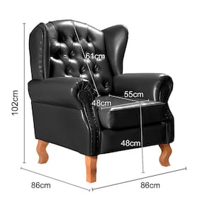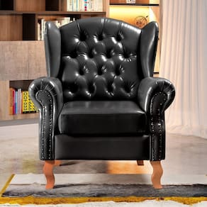 É necessário que haja uma ou mais pessoas no local para receber, desembalar, e conferir o produto. Acompanha Almofadas extras: Não Acompanha Puff: Não Almofada do assento: Não Possui Almofada do encosto: Não Possui Altura do assento até o chão: 48 cm Altura do Encosto: 120 cm Ambiente Principal: Sala de Estar Complexidade da Montagem: Baixa: pode ser montado por uma pessoa sozinha Cor: Preto Cor do Produto: Preto Design Assinado: Não Enchimento do Braço: Espuma D-26 Encosto para a Cabeça: Sim Estampado: Não Extensível: Não Informações Complementares: 120Kg por acento Itens Inclusos: 1 Poltrona Imperador + Os 2 pares de Pés Linha ou Coleção: Imperador Material do Braço: Madeira Eucalipto Material dos Pés: Madeira Eucalípto Modelo de Poltrona: Fixo Necessita Montagem: Sim Origem do Produto: Nacional Peso: 35 kg Possui Percintas Elásticas: Sim Possui Pés: 04 Possui Rodízio: Não Recomendações de Uso, Manutenção e Limpeza: Limpeza e cuidados: pode ser utilizado aspirador de pó, escova com cerdas macias ou limpeza a seco. Não utilizar produtos químicos, abrasivos ou limpeza a vapor. Evitar exposição prolongada ao sol. Sistema de Montagem: Enroscar os Pés Suporta Até (kg): 120 kg Tecido Predominante: Couro Sintético Tipo de Assento: Fixo Tipo de Encosto: Fixo Tipo de Poltrona: Decorativa