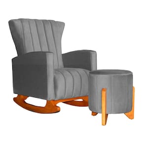 Poltrona Com Balanço E Puff Melinda Suede Cinza Mz Decor