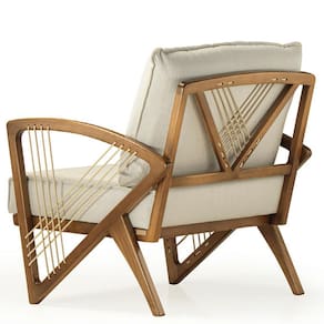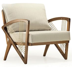 A Poltrona Gandú apresenta braços com detalhes curvos e com cordas transpassadas na madeira para dar um toque de suavidade e conforto dando ar ainda mais de modernidade, trazendo um design expressivo e ergonômico, unindo sua forma e função com um conceito visual inovador. É uma belíssima opção para compor o seu ambiente, trazendo elementos da natureza para sua decoração integrando estética e funcionalidade com muito charme e conforto. Poltrona Gandú possui um assento em Espuma Soft 28 e encosto Espuma Eco Soft 20 com tecido em 60% Algodão e 40% Poliéster, com uma estrutura Produzida em 100% em madeira eucalipto proveniente de reflorestamento, sua estrutura encosto possuem recortes vazados e um detalhe especial além de possuir Cordas de couro reconstituído na cor envelhecido que dá um toque todo especial ao produto e mostra o encaixe perfeito de elegância e modernidade que só a Ozki tem. Esse produto é feito exclusivamente pelo designer Solonide Cardoso, um renomado profissional que trabalha com materiais ecologicamente corretos. Seus desenhos são inéditos e criativos e são feitos com equilíbrio e elegância