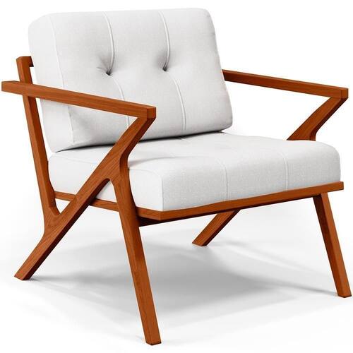 A Poltrona Decorativa Sala De Estar Com Cintas De Corano Laís B04 Facto Branco - Lyam Decor se sobressai em qualquer ambiente, permite diversas combinações harmônicas e ainda proporciona muito aconchego. O match do encosto com percintas de couro com o revestimento em Facto, somado à estrutura em madeira com pegada geométrica garantem extrema idade e personalidade para sua decoração.
