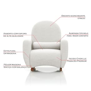 Poltrona Confortável Amamentação com Balanço Pés em Madeira Maciça com Puff Descanso Lara Off White