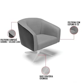 Aqui você encontrará lindas opções de poltronas que combinem com seu estilo e completem o ambiente. A poltrona Stella irá trazer um charme todo especial na sua casa. Composta por espuma mais densa D-23 no seu encosto e no assento, tornando o móvel super resistente, é revestida em Tecido Corano Preto com Veludo no tom Grafite Luxo, que contribui muito no conforto e no seu bem estar, além de ser super fácil de limpar. Você não pode deixar faltar essa poltrona linda na sua casa. Escolha a sua!