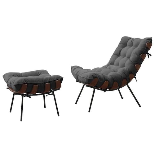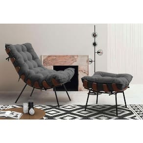 Poltrona Costela Adão Com Puff Linho Cinza - Poltrona com Puff