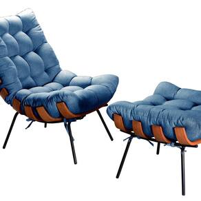 Itens inclusos: 1 Poltrona 1 Puff já montados e prontos para uso. Acompanha Almofadas extras: Não Acompanha Puff: Sim Almofada do assento: Não Possui Almofada do encosto: Não Possui Altura do assento até o chão: 50 Altura do Encosto: 85 Ambiente Principal: Sala de Estar Complexidade da Montagem: Baixa: pode ser montado por uma pessoa sozinha Cor: Azul Cor do Produto: Azul Design Assinado: Sim Encosto para a Cabeça: Não Estampado: Não Extensível: Não Itens Inclusos: 1 Poltrona, 1 Puff, Kit Ferragens Linha ou Coleção: Costela Material dos Pés: Madeira Eucalípto Modelo de Poltrona: Fixo Necessita Montagem: Sim Origem do Produto: Nacional Peso: 24 kg Possui Percintas Elásticas: Não Possui Pés: 04 Possui Rodízio: Não Recomendações de Uso, Manutenção e Limpeza: Limpeza e cuidados: pode ser utilizado aspirador de pó, escova com cerdas macias ou limpeza a seco. Não utilizar produtos químicos, abrasivos ou limpeza a vapor. Evitar exposição prolongada ao sol. Sistema de Montagem: Apenas Colocar os pés Suporta Até (kg): 120 Tecido Predominante: Linho Tipo de Assento: Fixo Tipo de Encosto: Fixo Tipo de Poltrona: Decorativa