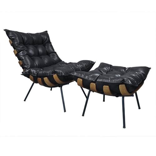 Poltrona e Puff Costela Couro Ecológico