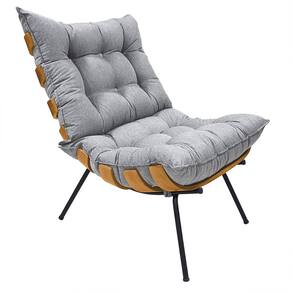 Poltrona Costela com Puff Decoração Sala de Estar Linho