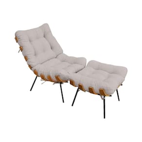 AS IMAGENS SÃO MERAMENTE ILUSTRATIVAS E PODEM SOFRER VARIAÇÕES DE COR E PEQUENOS DETALHES DE ACORDO COM O SEU MONITOR, ILUMINAÇÃO DO AMBIENTE E ATÉ MESMO A SUA PERCEPÇÃO VISUAL.Poltrona Costela com Puff em Linho Bege