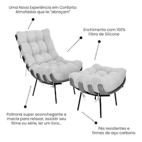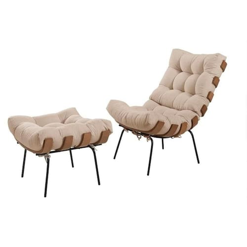 Poltrona Costela com Puff Linho Bege