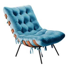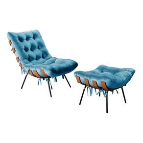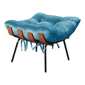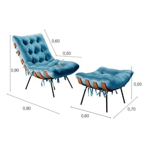 Poltrona Costela de Adão com Puff Botonê Decoração Sala Varanda Recepção - Azul Turquesa