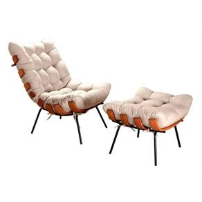 Poltrona Costela de Adão com Puff Tecido Linho Off