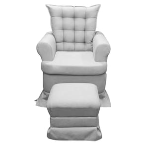 Poltrona da Mamãe Linha Alta com Balanço e Puff Linho Bouclê Cinza SOFA STORE - Cinza Claro