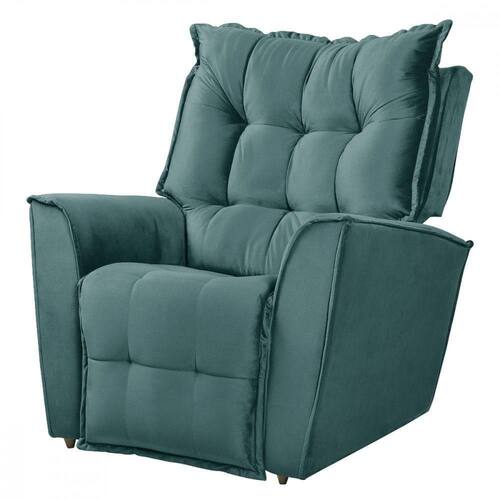 Poltrona Da Mamãe Para Sala Reclinavel Carinho Veludo Ciano Ciano A Poltrona Carinho e a combinacao perfeita de conforto, sofisticacao e versatilidade. Com um estofamento macio e apoios acolchoados, foi cuidadosamente projetada para oferecer o maximo de bem-estar em diferentes momentos do seu dia a dia, seja para ler um livro, assistir ou simplesmente relaxar. Sua funcao reclinavel, com multiplas posicoes, garante um conforto personalizado, permitindo total relaxamento. Com um design elegante, ela se adapta facilmente a diversos ambientes, adicionando um toque de classe e funcionalidade ao seu espaco. DE FABRICA Ao comprar conosco, voce tem a confianca de estar adquirindo um produto de qualidade. E se, por algum motivo, o produto apresentar algum dentro de 90 dias, oferecemos total assistencia, ja que somos os fabricantes. Nosso compromisso e garantir que sua experiencia de compra seja excepcional, mantendo sempre uma relacao de confianca com nossos clientes. Sua satisfacao e nossa prioridade. Dimensoes da Poltrona Fechada: Altura: 104 cm Altura do Encosto: 68 cm Largura Total: 105 cm Largura do Assento: 51 cm Profundidade: 95 cm Profundidade do Assento: 52 cm Altura do Assento do Chao: 35 cm Largura de cada Braco: 14 cm Peso: 29,5 Kg