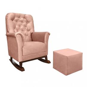 A Poltrona Agatha Canoa com Puff Reto Rose combina elegancia e conforto com estrutura em pinus e eucalipto de reflorestamento e revestimento em veludo. Inclui puff reto e assento em espuma D20 e D23, com acabamento em botone. Ideal para ambientes internos, suporta ate 120 kg por pessoa e possui percintas elasticas para suporte adicional.