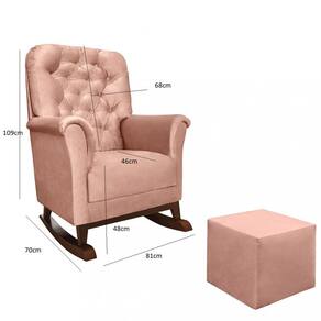Caracteristicas: Estrutura em Pinus e Eucalipto de Reflorestamento Material do enchimento do encosto D20 Material do enchimento do assento D23 Tecido Veludo Suporta ate 120kg Percintas elasticas Puff suporta peso de ate 80kg Altura do assento ate o chao 48cm
