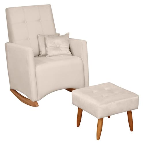 Poltrona de Amamentação Ana com Balanço Pés Canoa e Puff - Fratello
